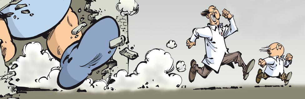 Un amnésique face à son dictaphone, des chirurgiens en salle d'opération, les professeurs Médart et Jenkins en pleine expérimentation, de vaillants explorateurs dans la jungle. De ces (banales ?) situations Clarke tire une série de gags, chacun en une planche.